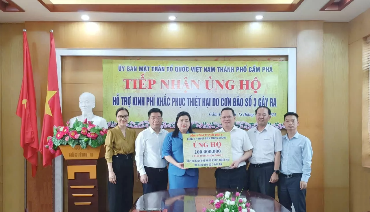 Công ty Nhiệt điện Mông Dương (đơn vị thuộc EVNGENCO3) trao ủng hộ khắc phục thiệt hại do cơn bão số 3 tới Ủy ban Mặt trận Tổ quốc Việt Nam TP Cẩm Phả, Quảng Ninh