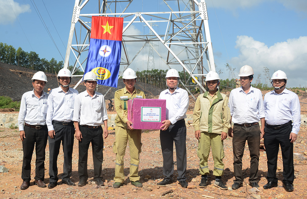 Đoàn công tác trao quà cho đơn vị tư vấn giám sát là Công ty Truyền tải điện 2
