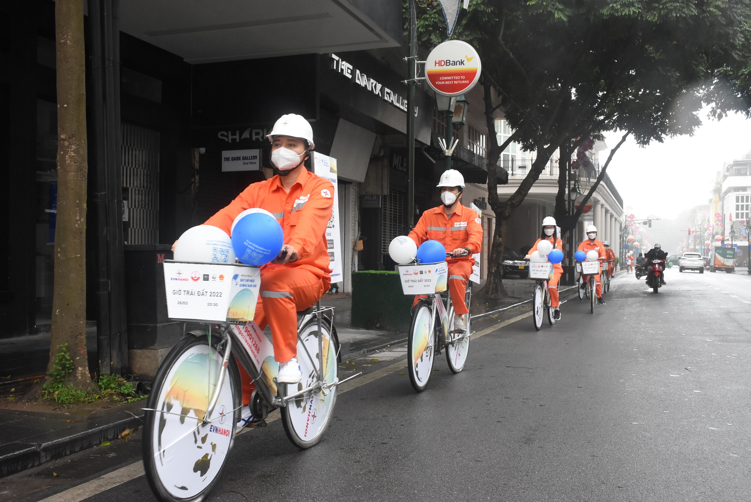 CBCNV Tổng công ty Điện lực TP Hà Nội đạp xe tuyên truyền hưởng ứng Giờ Trái đất 2022