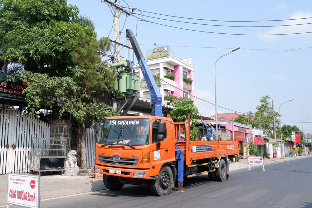 Công ty Điện lực Củ Chi thực hiện nâng công suất máy biến áp vào sáng 1/4, đáp ứng nhu cầu điện sinh hoạt tăng cao ngay trong thời gian giãn cách xã hội - Ảnh: ĐVCC