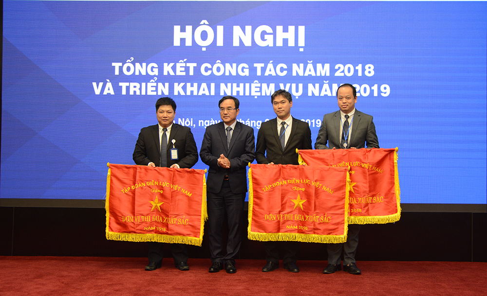 Chủ tịch HĐTV EVN Dương Quang Thành trao Cờ thi đua của EVN cho các đơn vị đạt thành tích xuất sắc