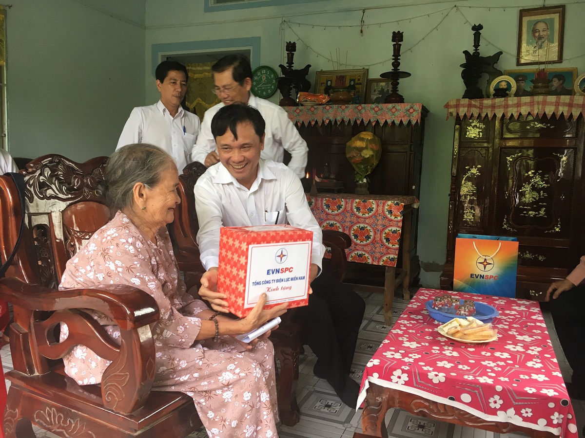 Nhân dịp này, Tổng giám đốc EVNSPC và đoàn công tác cũng đến thăm, tặng quà cho Mẹ Việt Nam Anh hùng Huỳnh Thị Mảo - 86 tuổi, ngụ tại ấp Thới, xã Đại Điền, huyện Thạnh Phú, tỉnh Bến Tre.