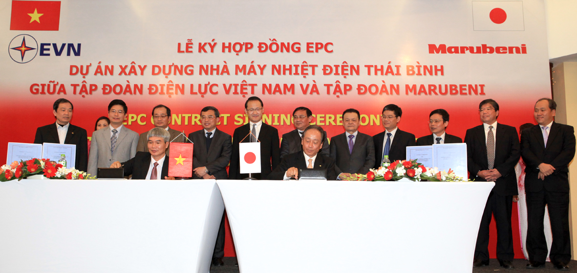 Chiều nay, 26/12/2013, Tập đoàn Điện lực Việt Nam (EVN) tổ chức Lễ ký kết Hợp đồng gói thầu số 11 - Nhà máy chính của Dự án Nhà máy nhiệt điện Thái Bình theo hình thức Tổng thầu (EPC) với nhà thầu là Tập đoàn Marubeni Coporation (Nhật Bản).