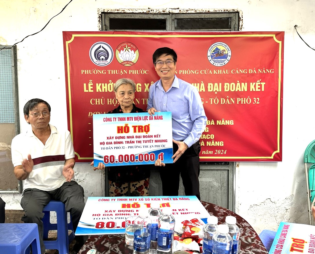 Thông qua sự kết nối của chính quyền địa phương, Công ty Điện lực Đà Nẵng đã hỗ trợ xây dựng nhà đại đoàn kết cho gia đình bà với số tiền 60 triệu đồng. Ông Bùi Đỗ Quốc Huy – Phó Giám đốc Công ty Điện lực Đà Nẵng cho biết, bên cạnh nhiệm vụ sản xuất kinh doanh, đảm bảo cung cấp điện trên địa bàn thành phố, trong những năm qua ngành Điện chú trọng thực hiện tốt trách nhiệm xã hội thông qua công tác đền ơn đáp nghĩa, ủng hộ trao tặng nhà đại đoàn kết cho các gia đình có hoàn cảnh đặc biệt khó khăn.