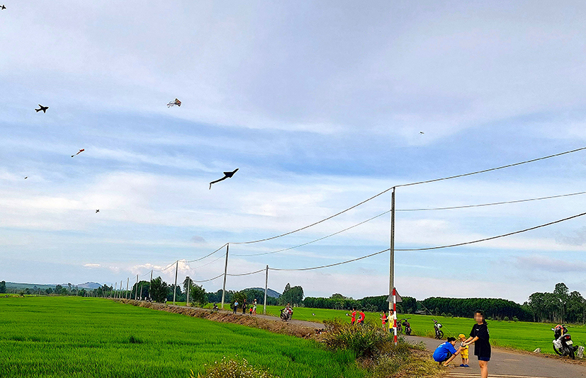 Thường xuyên đi qua cánh đồng thôn 6, anh Thiên (ngụ xã Bình Trung) cho biết, chiều tối anh đi làm về, phát hiện phía trước có nhiều trẻ em thả diều trên đường nên đã chủ động chạy xe chậm. Tuy nhiên rất nhiều lần anh bị dây diều vướng vào người và xe.