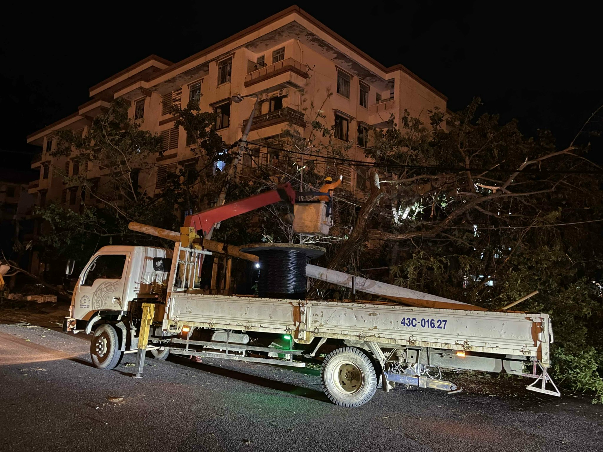 Công nhân Điện lực TP Đà Nẵng vẫn bám trụ, khôi phục lưới điện trong đêm
