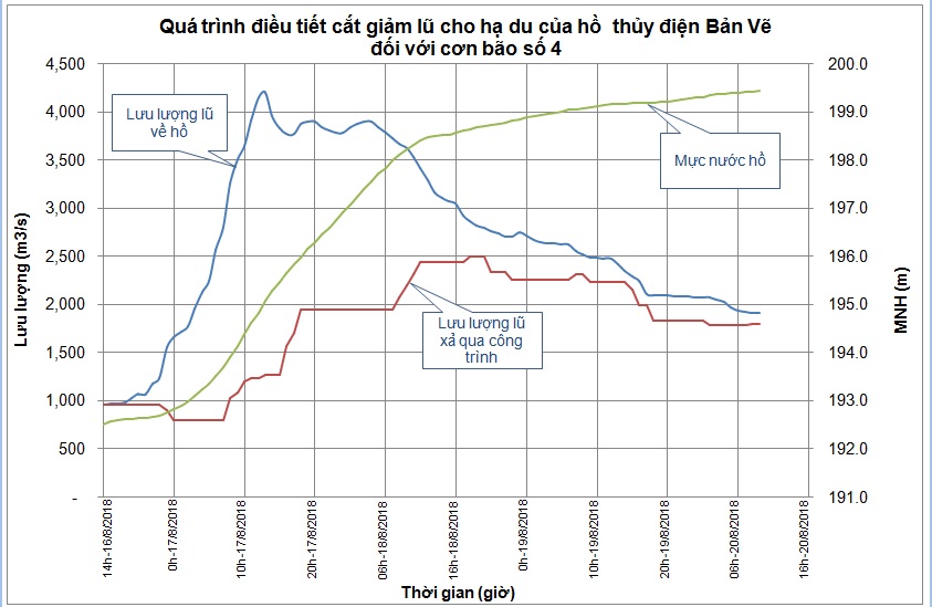 Biểu đồ quá trình điều tiết cắt giảm lũ hạ du thủy điện Bản Vẽ từ ngày 16 - 20/8/2018