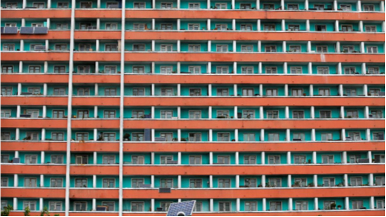 Tấm pin năng lượng mặt trời lắp trên ban công nhà dân tại một chung cư ở Bình Nhưỡng năm 2016. Ảnh: Reuters.