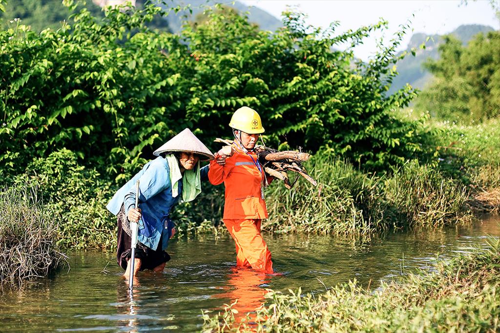 Bức ảnh “Giúp dân” của tác giả Ngọc Hoa, công nhân Điện lực Đồng Hỷ, Công ty Điện lực Thái Nguyên đã ghi lại hình ảnh đẹp của những người thợ điện vùng cao, cũng như tình cảm công – dân gần gũi của bà con dân tộc thiểu số đối với những người thợ áo cam.