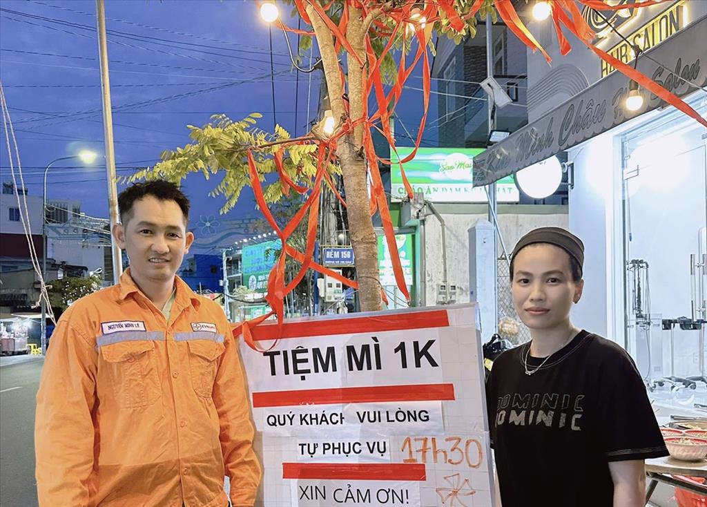 Anh Nguyễn Minh Lý, công nhân Điện lực Long Điền (Công ty Điện lực Bà Rịa - Vũng Tàu) cùng vợ là chị Nguyễn Thị Ý Nhi đã mở một quán mì nhỏ giúp đỡ...
